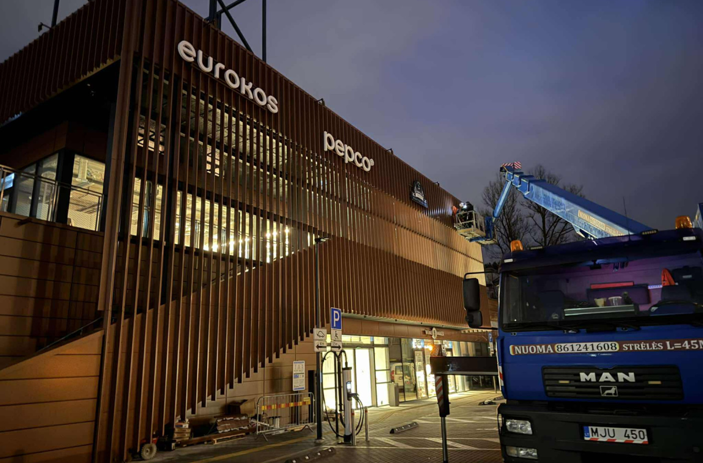 Pagrindinis projekto akcentas – šviečianti perimetrinė iškaba, akcentuojanti pastato kontūrą ir sukurianti ryškų, lengvai atpažįstamą vizualinį elementą.